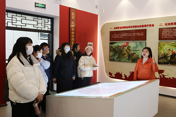 2月18日,老师们来到英山县白羊山村红四军鸡鸣河会议纪念园,集体瞻仰红四军革命烈士纪念碑,参观中国工农红军第四军历史陈列展。1931年9月4日,红四军移驻鸡鸣河,由军长徐向前、政委曾中生主持召开了全军连长指导员以上的积极分子会议,一致通过申明书,提出了在英、士斤、黄、广开展革命工作的正确主张。鸡鸣河会议坚持了从实际出发的战略方针,是红四军军史上一次重要的会议。