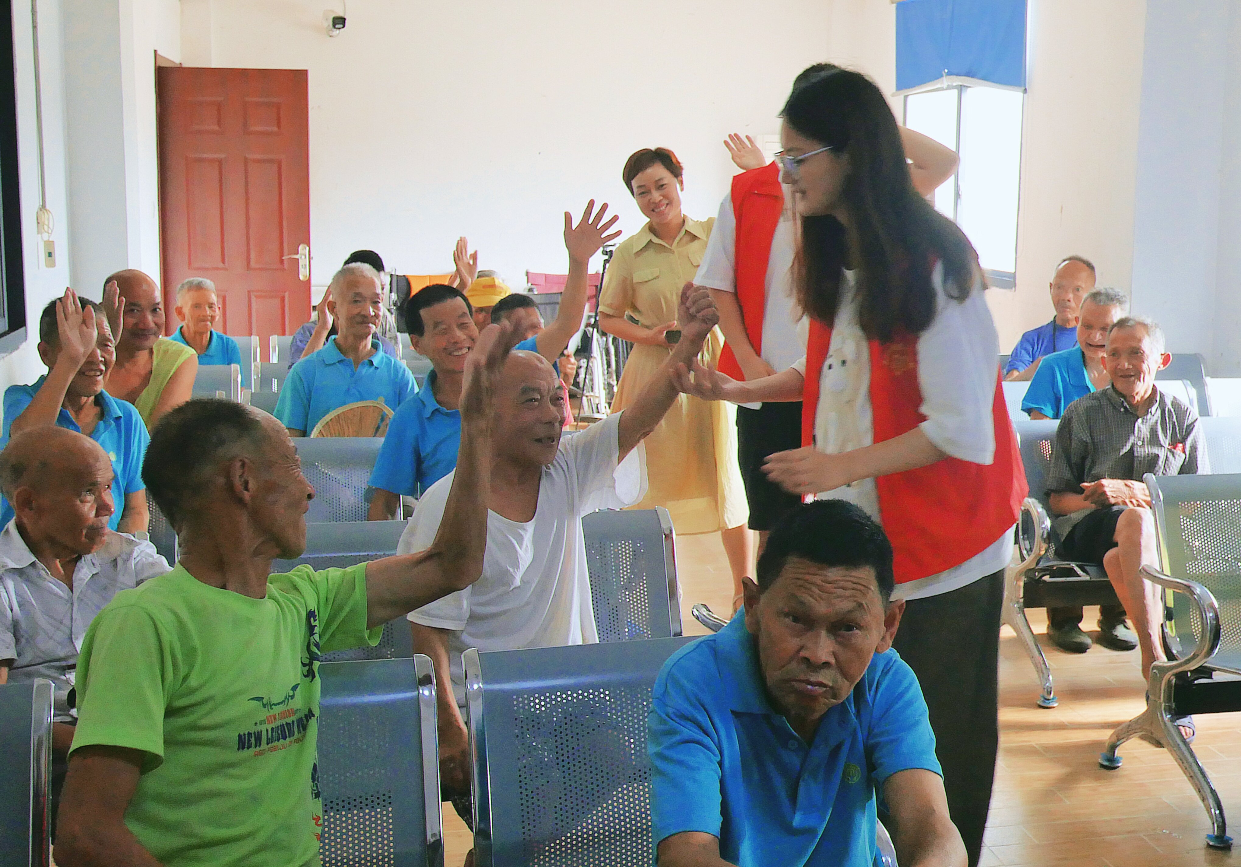 7月20日,团队来到匡河镇福利院,通过陪伴老人聊天、健康知识宣讲、智能设备使用指导、趣味小游戏互动等方式开展志愿活动。尤其是在趣味小游戏环节,团队成员积极引导、鼓励老人们团队合作参与游戏,使老人们深切感受到温馨友爱的互助氛围。福利院院长汪勇在与团队成员座谈时表示,“在院里,老人的基本生活虽然得以保障,但由于受到的社会资助有限,尤其老人无亲属陪伴,精神需求往往难以满足,同学们来这里陪老人聊聊天、做活动,通过这种方式有效地解决了这个难题,实在是太好了!”