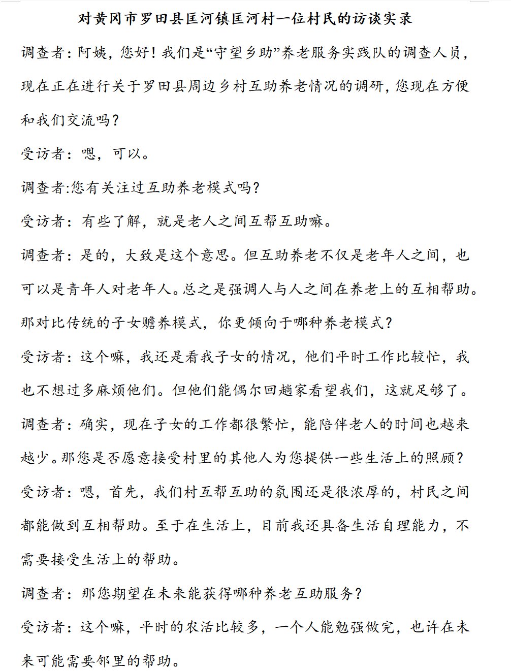 此次暑期社会实践历时一周,共收集了146份问卷数据和8份访谈记录,在实地调研中团队坚持走人民群众路线,真正做到问需于民、问计于民、问效于民。团队通过分析农村互助养老建设和发展中的问题,总结现有的问题及分析背后的原因,并提出相应的对策建议,真正做到互助养老的中国化、本土化、特色化。