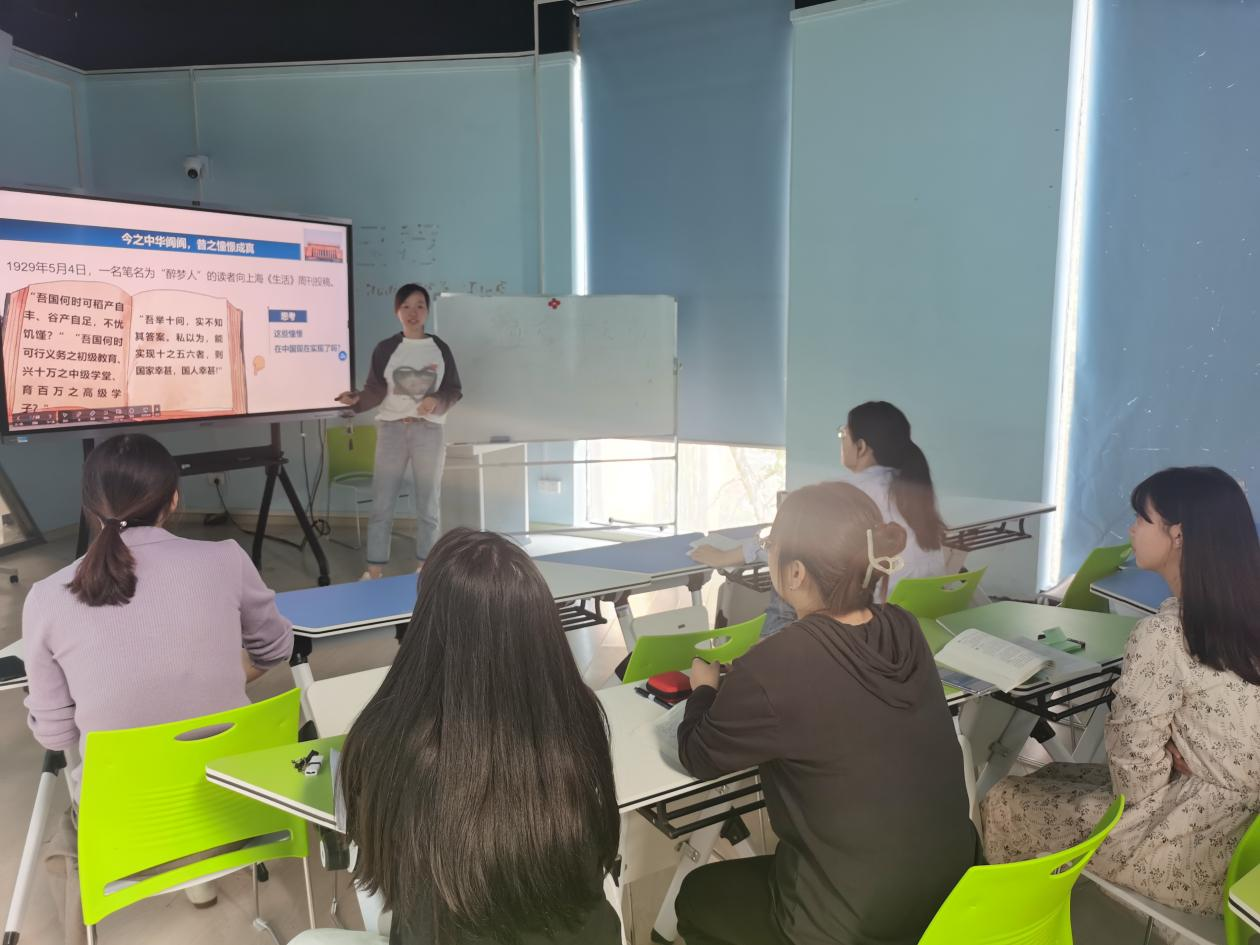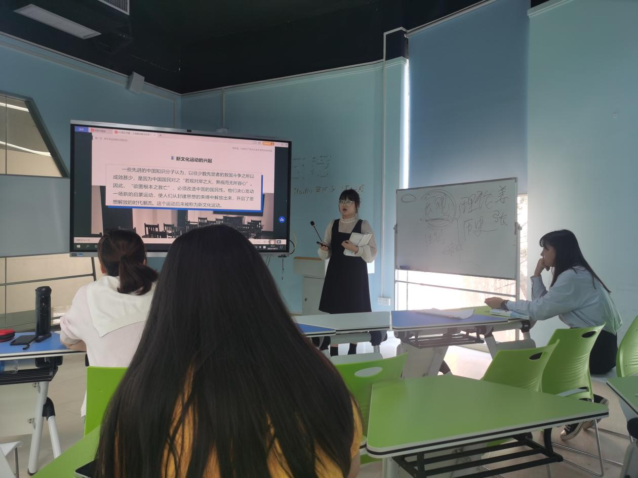 新进教师杨柳表示,通过观摩三位老师的讲授,让自己更加明确第四章的教学目的,即让学生了解中国共产党成立的背景,中国共产党的成立是中华民族发展史一个开天辟地的大事件,具有伟大而深远的意义。同时,也让学生深刻地认识到中国共产党的精神之源。