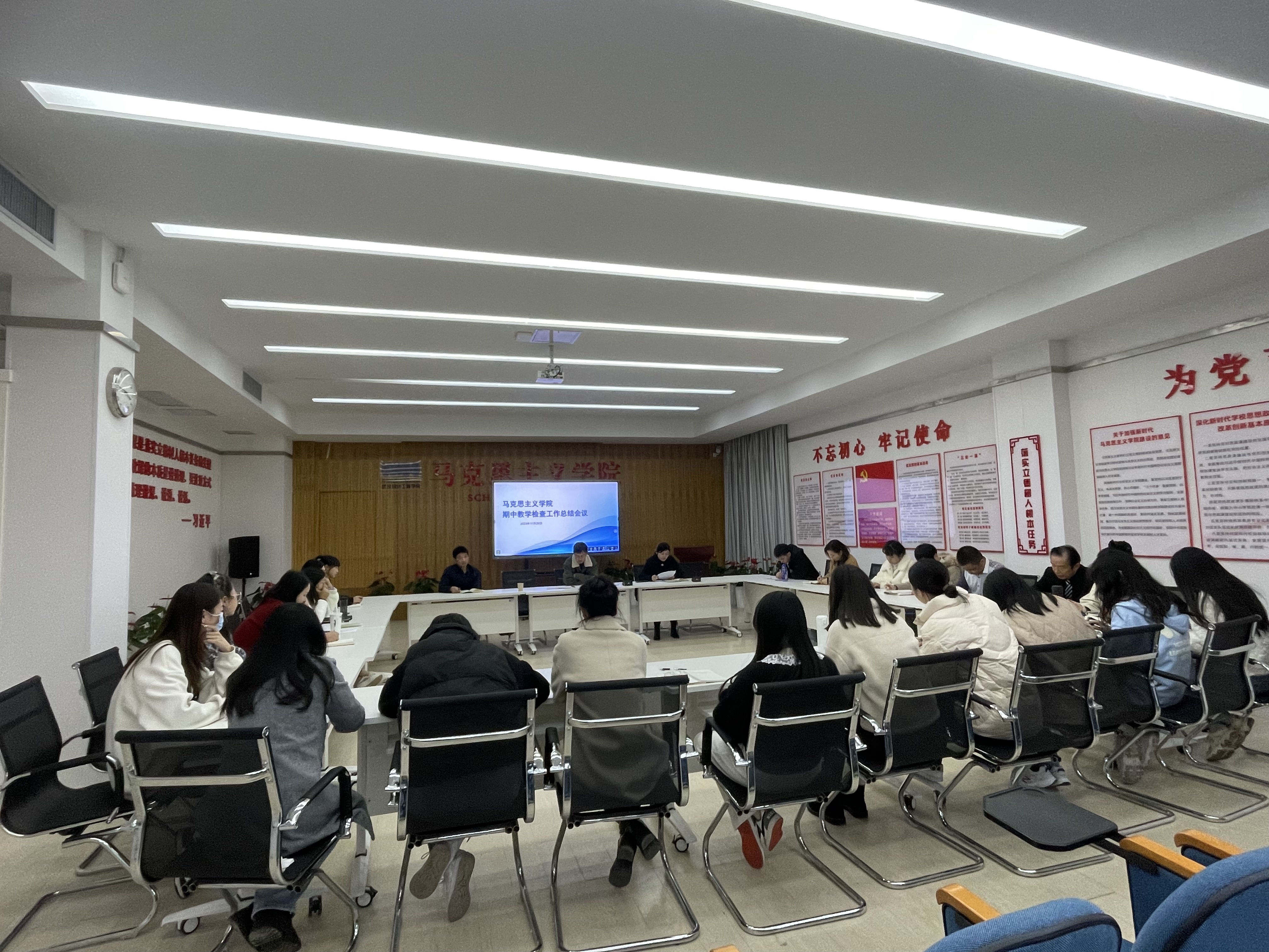 会上,学院党总支书记柯峰对课堂教学、学院党建工作、师德师风工作等提出四点思考:一是要做好课堂管理,确保教学效果;二是要注重强化师德修养,以优良教风引领学风转变,发挥思政课立德树人的关键作用;三是要合理利用学校和学院的教学资源、数字资源,不断优化教学手段,提升教学质量;四是重视学院的党建工作,提高党员意识,积极参与党建活动,为推动思政建设提供组织保证。