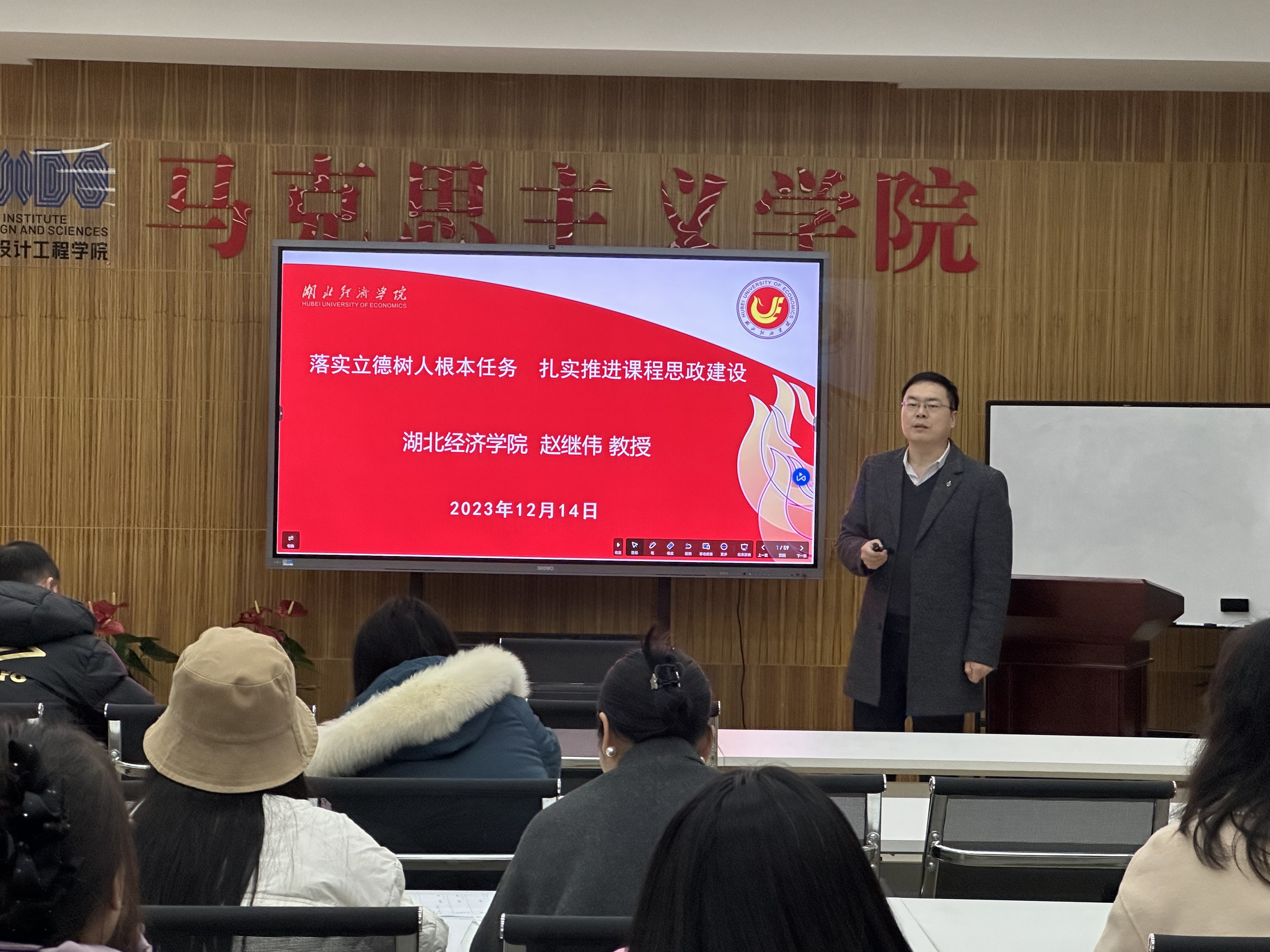 会上,赵继伟教授从以下四个方面进行分享交流:第一,讲述了课程思政的流变。简单介绍了课程思政的起源、渗透、探索、深化和确认,明确2020年(教思政【2020】1号)和(教高【2020】3号)两个重磅文件的颁布,标志着课程思政建设在全国范围内全面铺开。第二,介绍了课程思政的含义。讲述了课程思政的内涵、课程思政的边界、课程思政的地位,强调全面推进课程思政建设,要紧紧抓住教师队伍“主力军”、课程建设“主战场”、课堂教学“主渠道”,落实立德树人根本任务。第三,分析了课程思政存在的问题。重点强调了在课程思政的研究与实践中,主要表现为显性化、标签化、功利化等问题。第四,分享了解决课程思政存在问题的对策。一是要科学设计课程思政教学体系,课程思政建设工作要围绕全面提高人才培养能力这个核心点;二是要结合专业特点分类推进课程思政建设,做到分众教学;三是要将课程思政融入课堂教学建设全过程,要创新课堂教学模式,健全高校课堂教学管理体系;四是要提升教师课程思政建设的意识和能力,推动广大教师进一步强化育人意识。