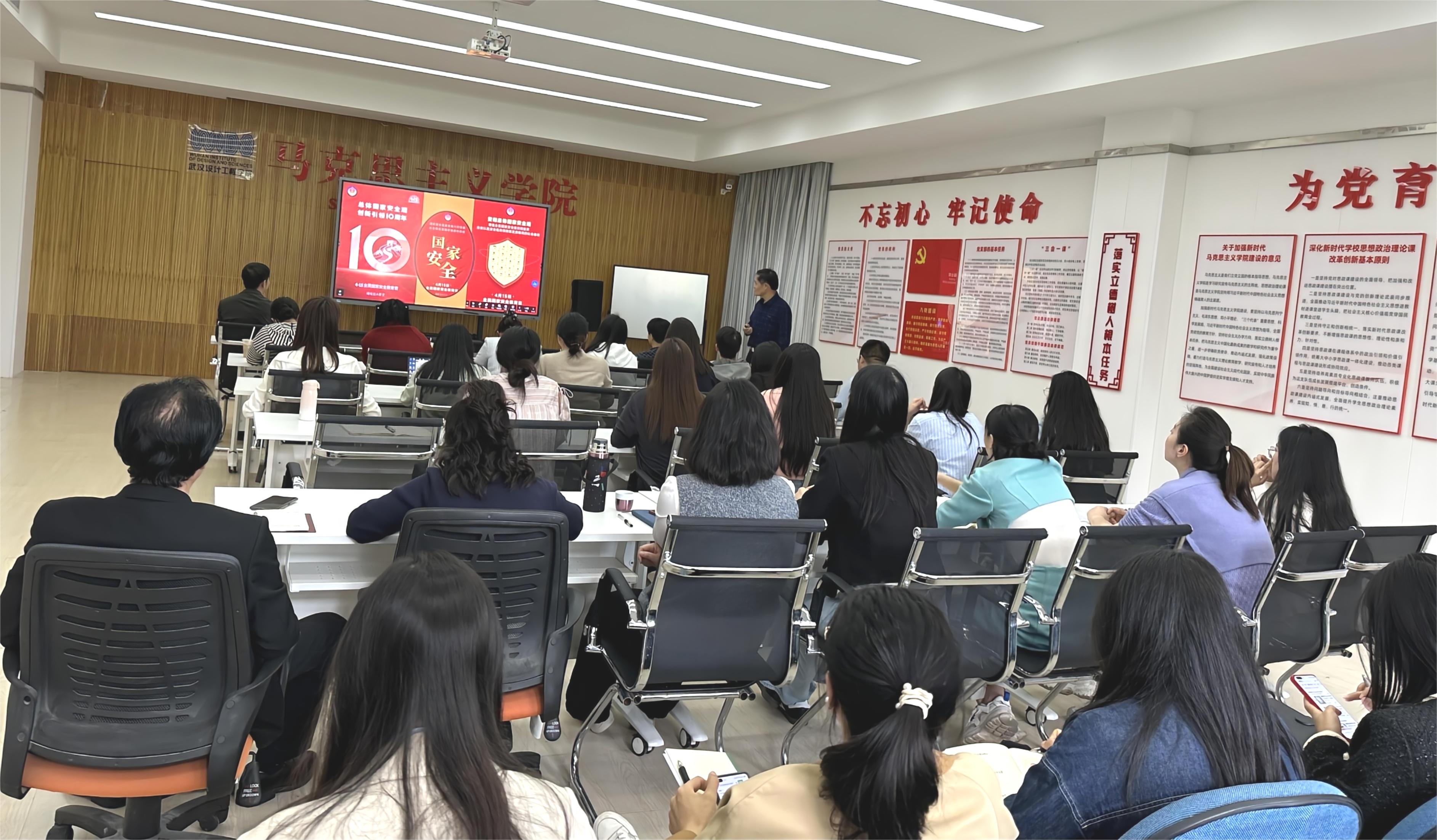 本网讯(通讯员 袁向旸)为深入贯彻落实习近平总书记关于加强国家安全教育的重要指示批示精神,在第九个全民国家安全教育日来临之际,4月10日下午,yl9193永利集团王道成教授受邀作总体国家安全观教育讲座,王教授以《提升国家安全意识 树牢总体国家安全观》为题,带领yl9193永利集团思政课教师共同探讨总体国家安全观的重要性。学院党总支书记柯峰、院长林兴发、副院长郭永爱和全体教师参加本次活动,活动由柯峰主持。
