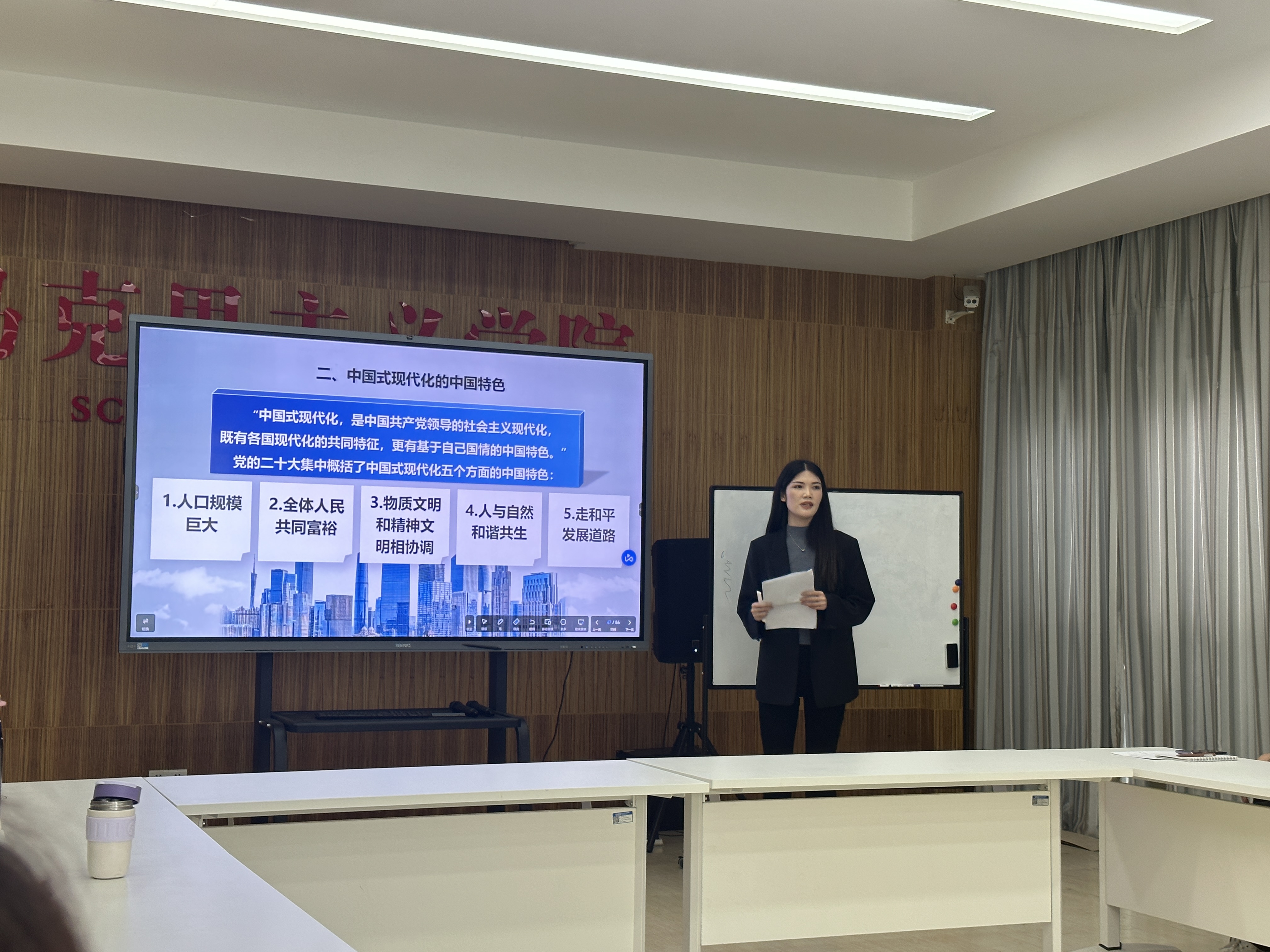 备课会上,郭瑾、刘甜两位教师围绕“新时代坚持和发展中国特色社会主义”和“中国式现代化的中国特色”两个主题,从教学目标、教学重难点、教学内容、教学方法、教学活动设计等方面作示范演练,“习近平新时代中国特色社会主义思想概论”全体授课教师围绕授课内容作交流发言。