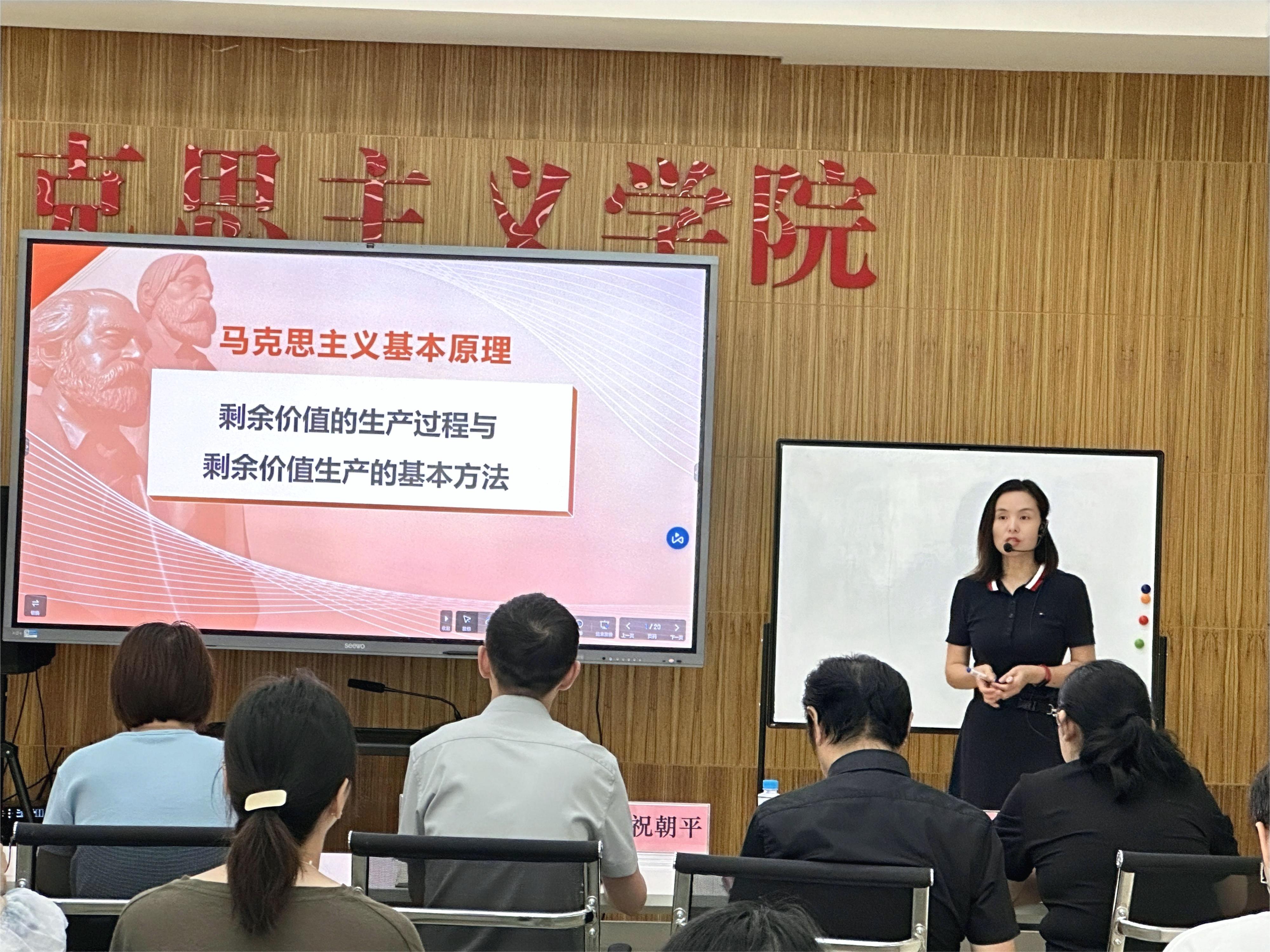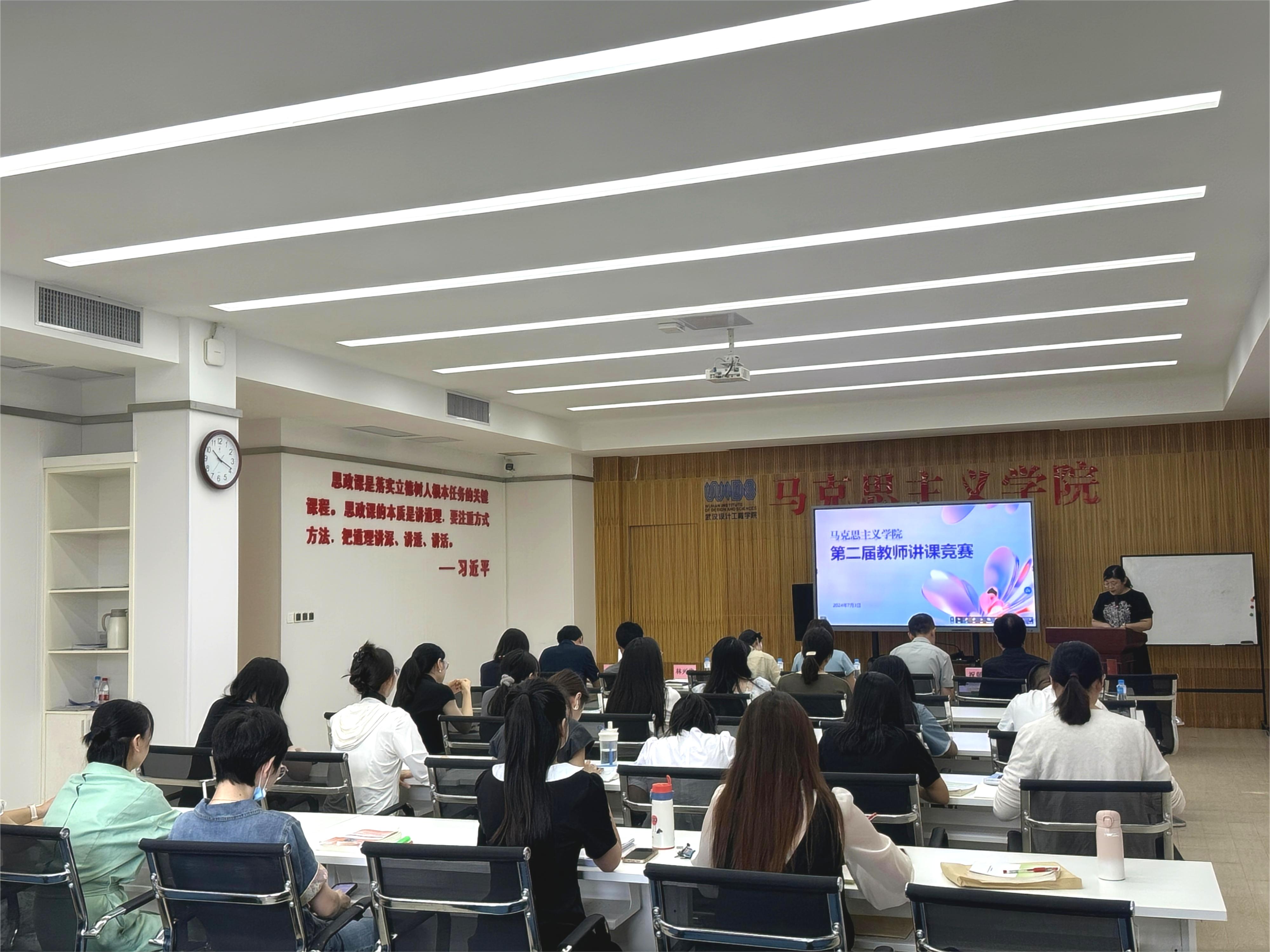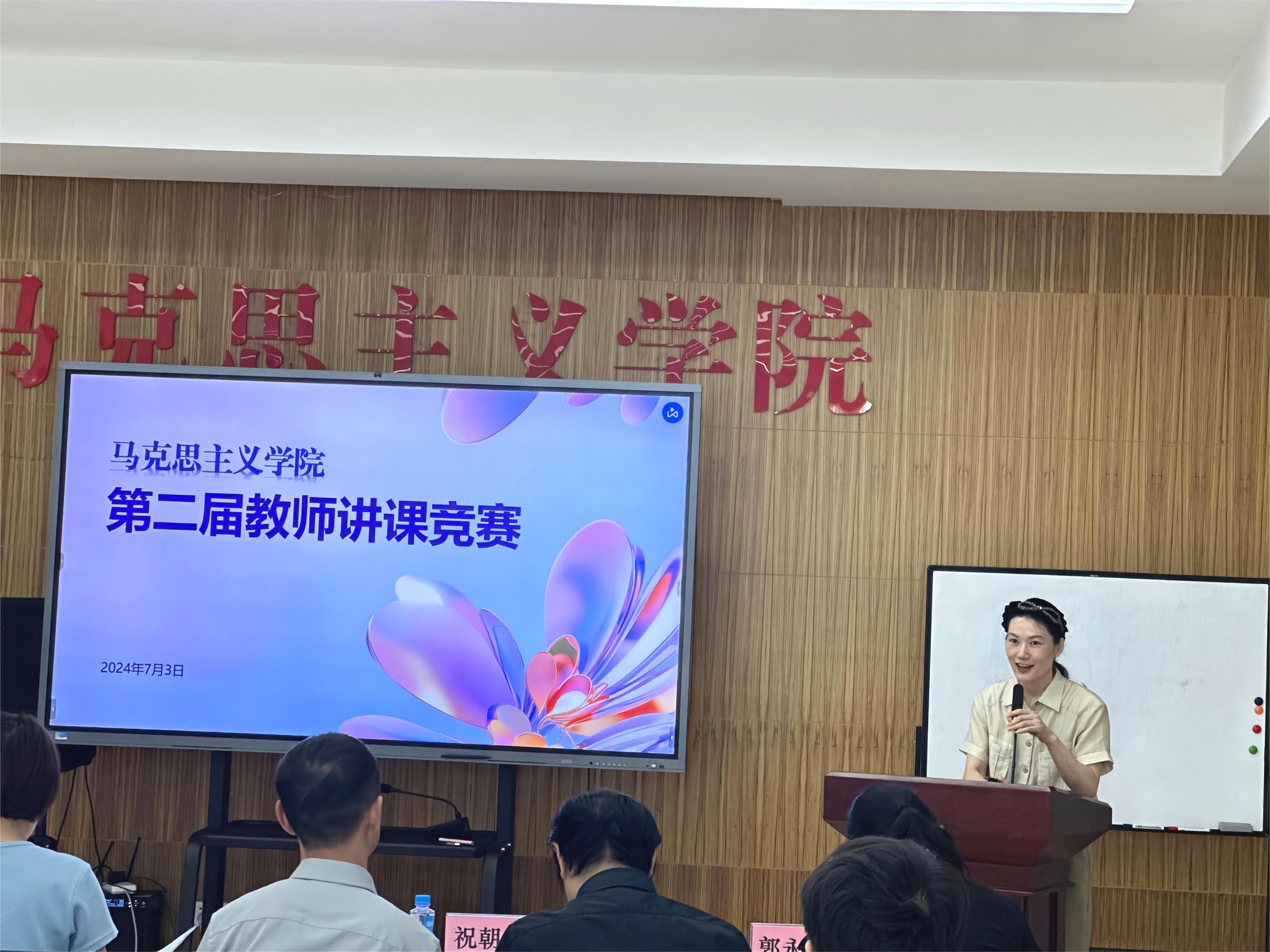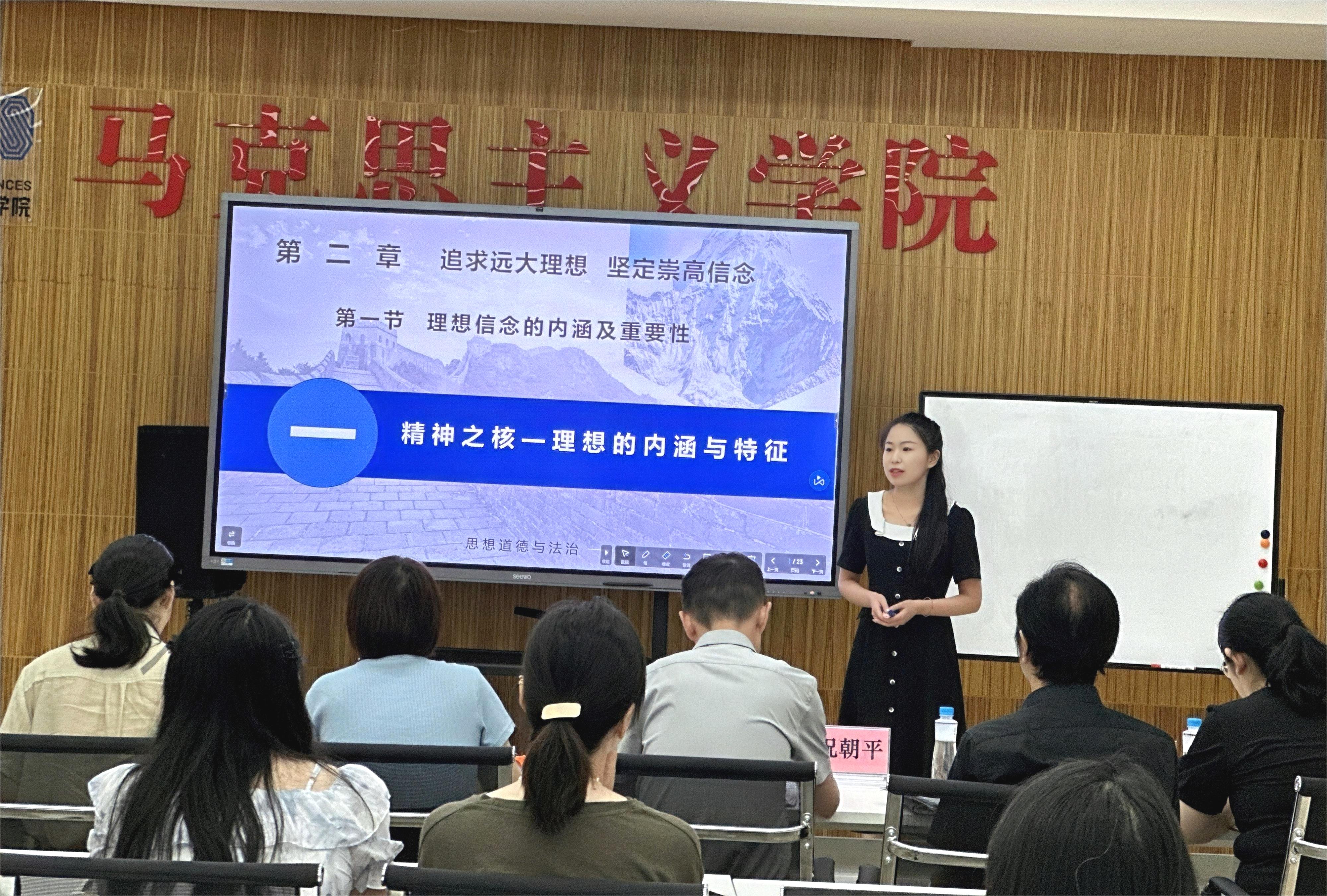 比赛中,参赛教师依次上台展示。汤博源老师以一张张精心挑选的图片导入,巧妙地在学习通平台上发起问题投票,吸引学生的注意力。她围绕“理想的内涵与特征”这一主题,用生动的语言、清晰的逻辑,引导学生明确理想的形成基础、追求目标以及在人生中的作用。张霞老师以一段引人入胜的动画视频开场,迅速将学生的注意力聚焦于“剩余价值”这一核心概念。她结合生动的实例,深入浅出地阐述了剩余价值的生产过程与剩余价值生产的基本方法,使复杂的经济理论变得通俗易懂。最后,周少敏老师以一个富有启发性的提问导入新课,并以大量史实案例作为支撑,生动再现了洋务运动的兴衰历程,深刻剖析了其历史作用及失败原因。