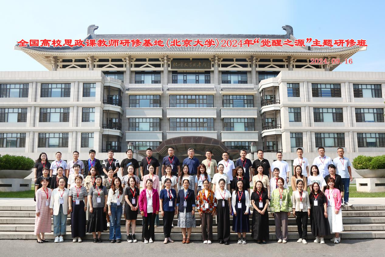 全国高校思政课教师研修基地(北京大学)2024年“觉醒之源”主题研修班全体学员合影。