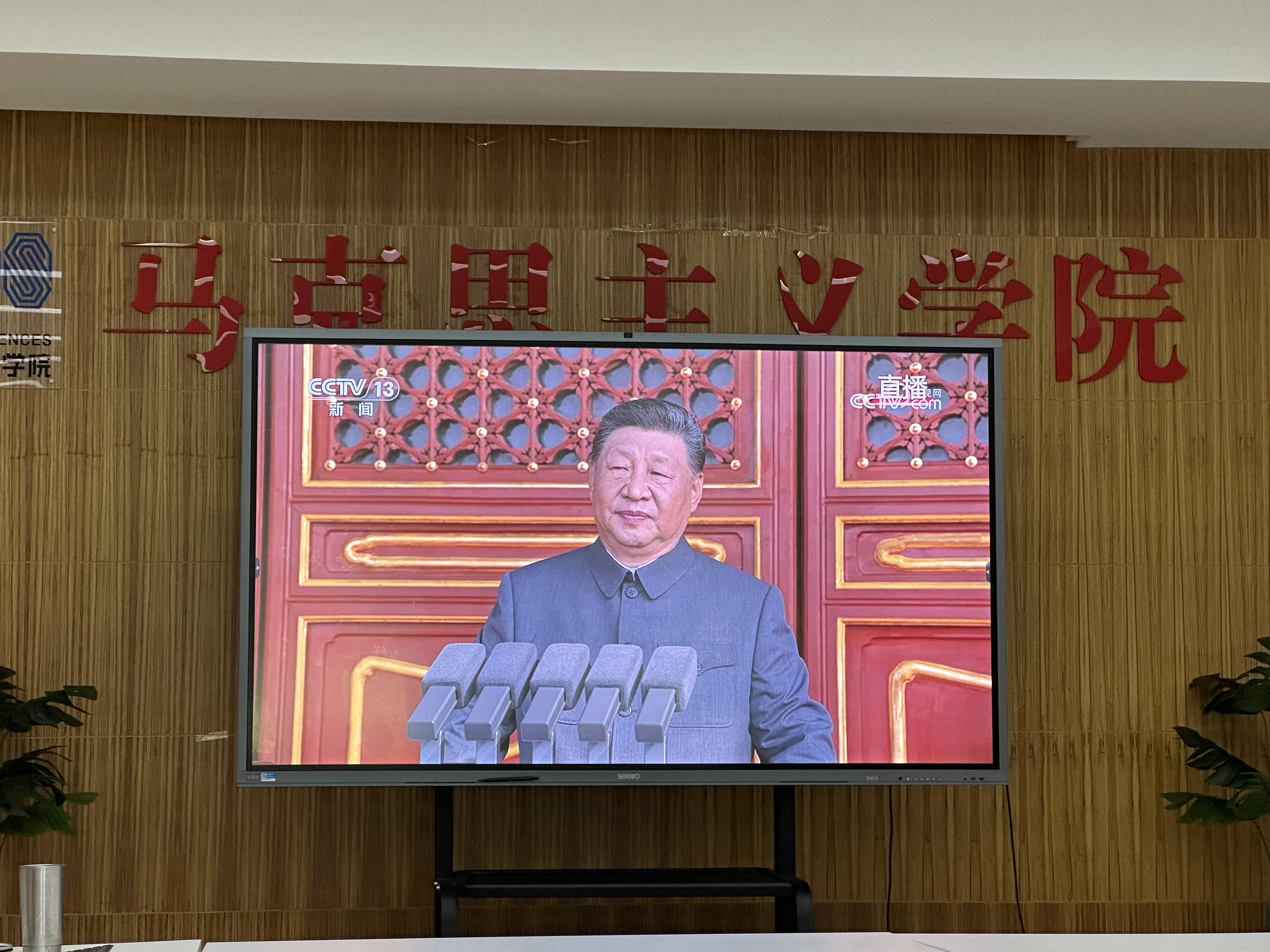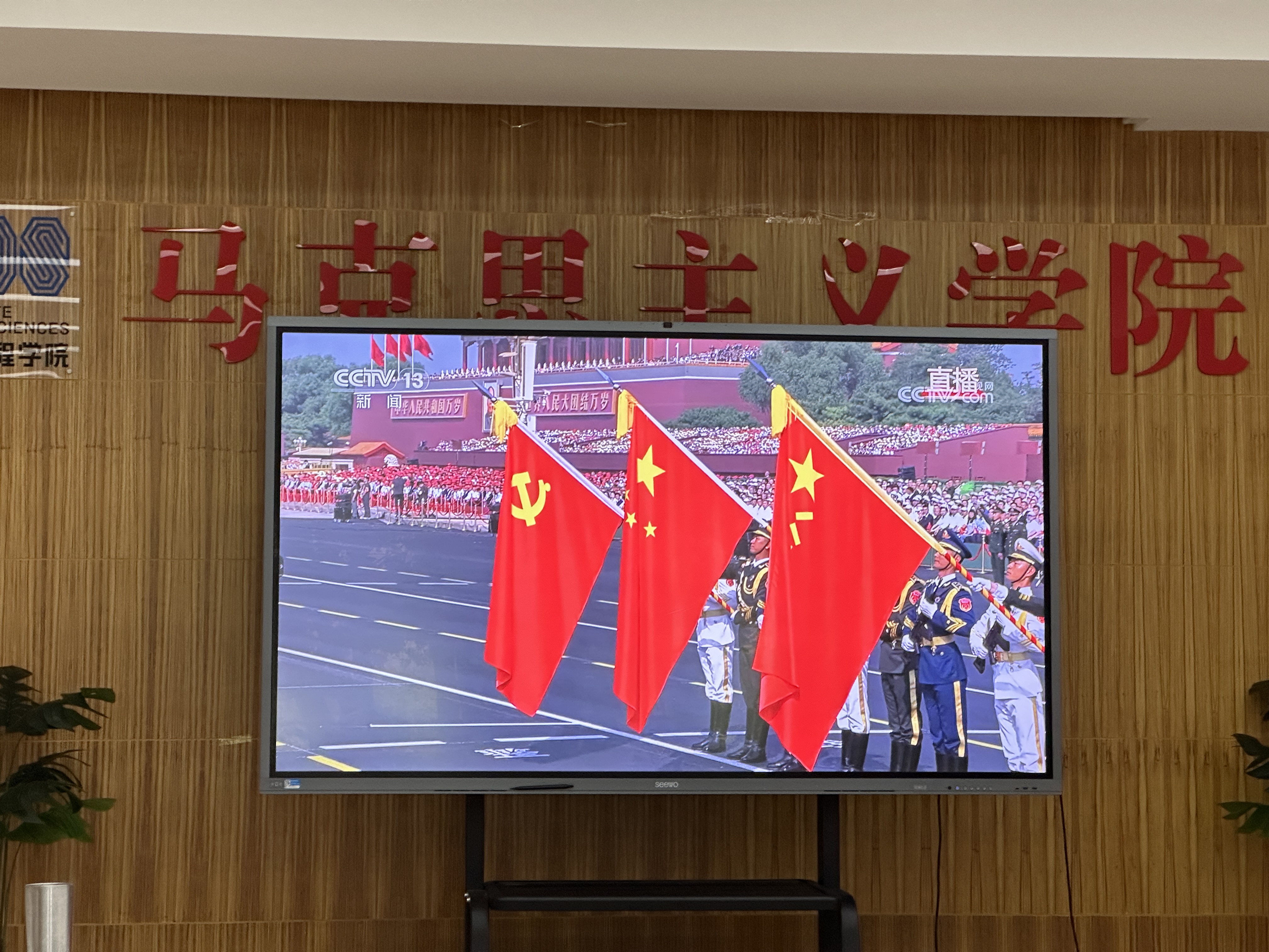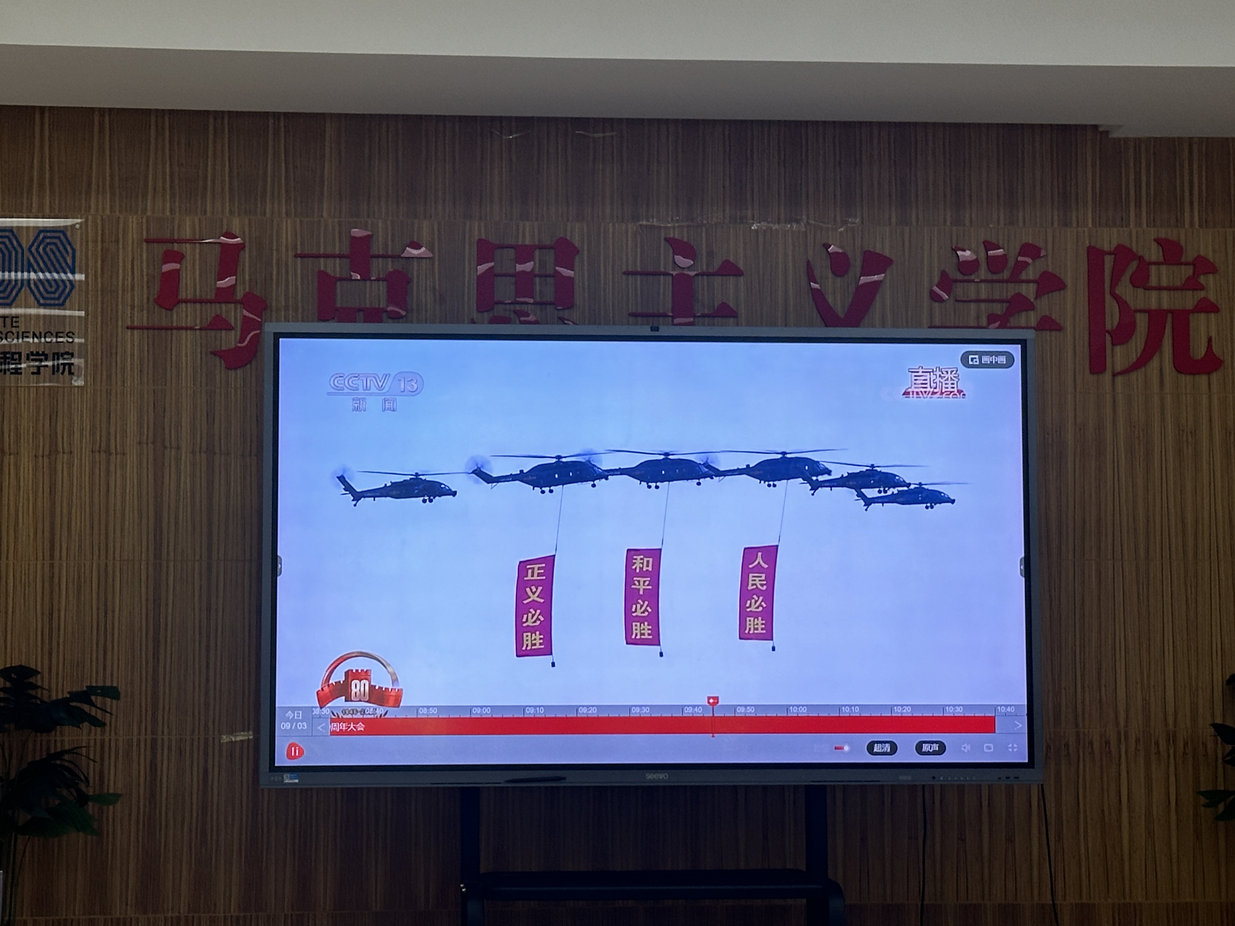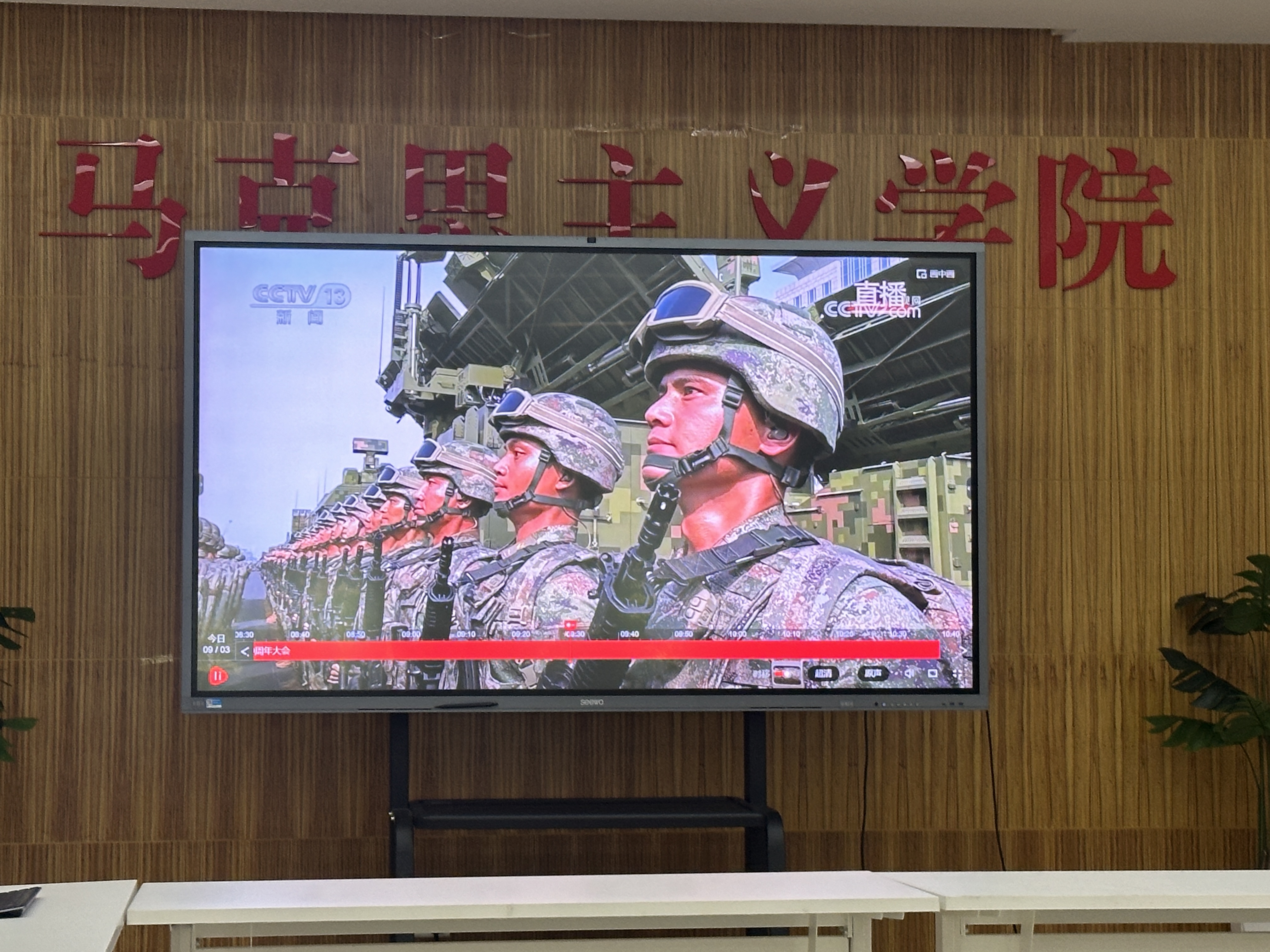 上午9时,阅兵仪式正式开始。学院教师通过大屏幕全程观看阅兵盛况,会议室里秩序井然、气氛热烈。方阵威武、战鹰翱翔,一列列威武雄壮的受阅方阵、一件件先进精良的现代化装备,既展现了新时代国防和军队现代化建设的辉煌成就,也彰显了中华民族捍卫国家主权、维护世界和平的坚定决心。观看过程中,教师们专注凝神,不时交流感悟,现场氛围庄重而热烈。