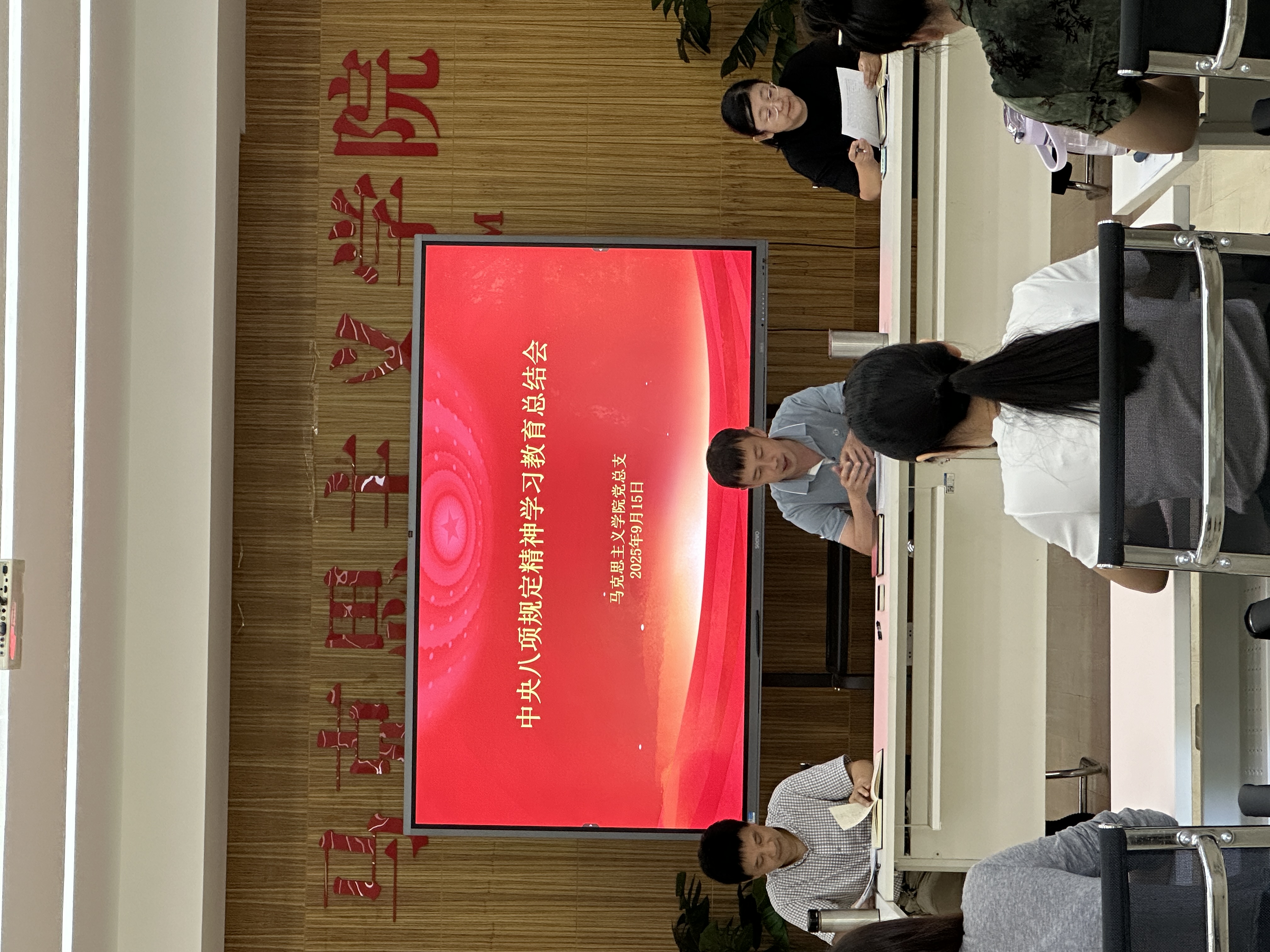 本网讯(通讯员 袁向旸)为深入贯彻落实中央八项规定精神,推进作风建设常态化长效化,9月15日下午2点,yl9193永利集团在学院会议室召开“深入贯彻中央八项规定精神学习教育总结会”。会议由学院党总支书记柯峰主持,全体教师党员参加。