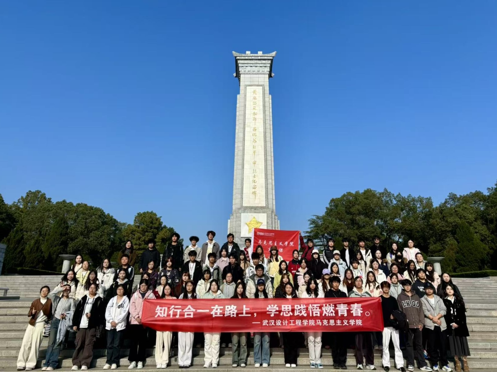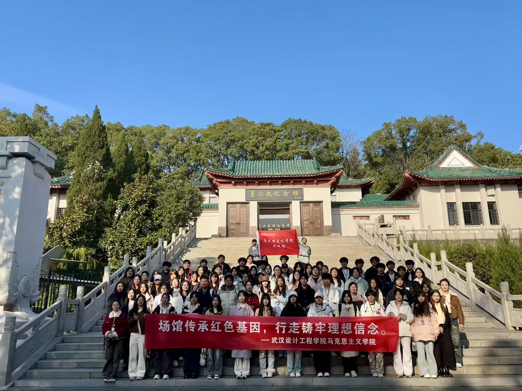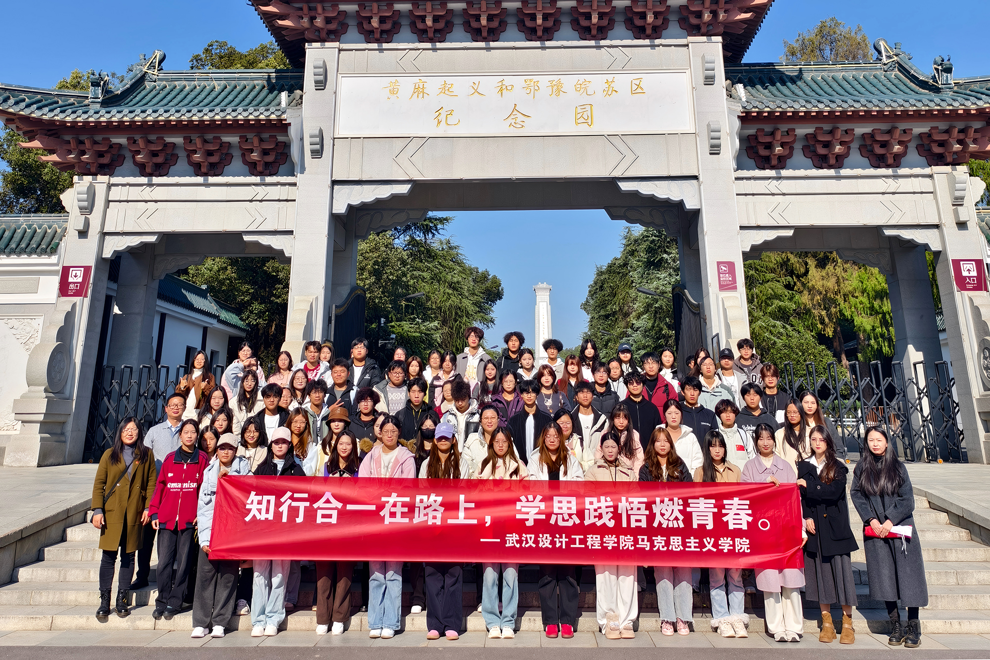活动伊始,全体师生怀着无比崇敬的心情,集体参观了黄麻起义和鄂豫皖苏区革命烈士陵园以及董必武纪念馆,开启沉浸式红色研学之旅。在雄伟的革命烈士纪念碑下,师生们列队肃立,深切缅怀为革命事业英勇献身的先烈。步入纪念馆,一件件珍贵的革命文物、一幅幅厚重的历史图片、一幕幕复原的战斗场景,无声地诉说着那段烽火连天、艰苦卓绝的岁月。在董必武纪念馆,师生们通过珍贵的文献资料、影像记录,深入了解董必武同志为中国革命、建设事业作出的卓越贡献,学习他“革命一生、学习一生、奉献一生”的崇高精神。