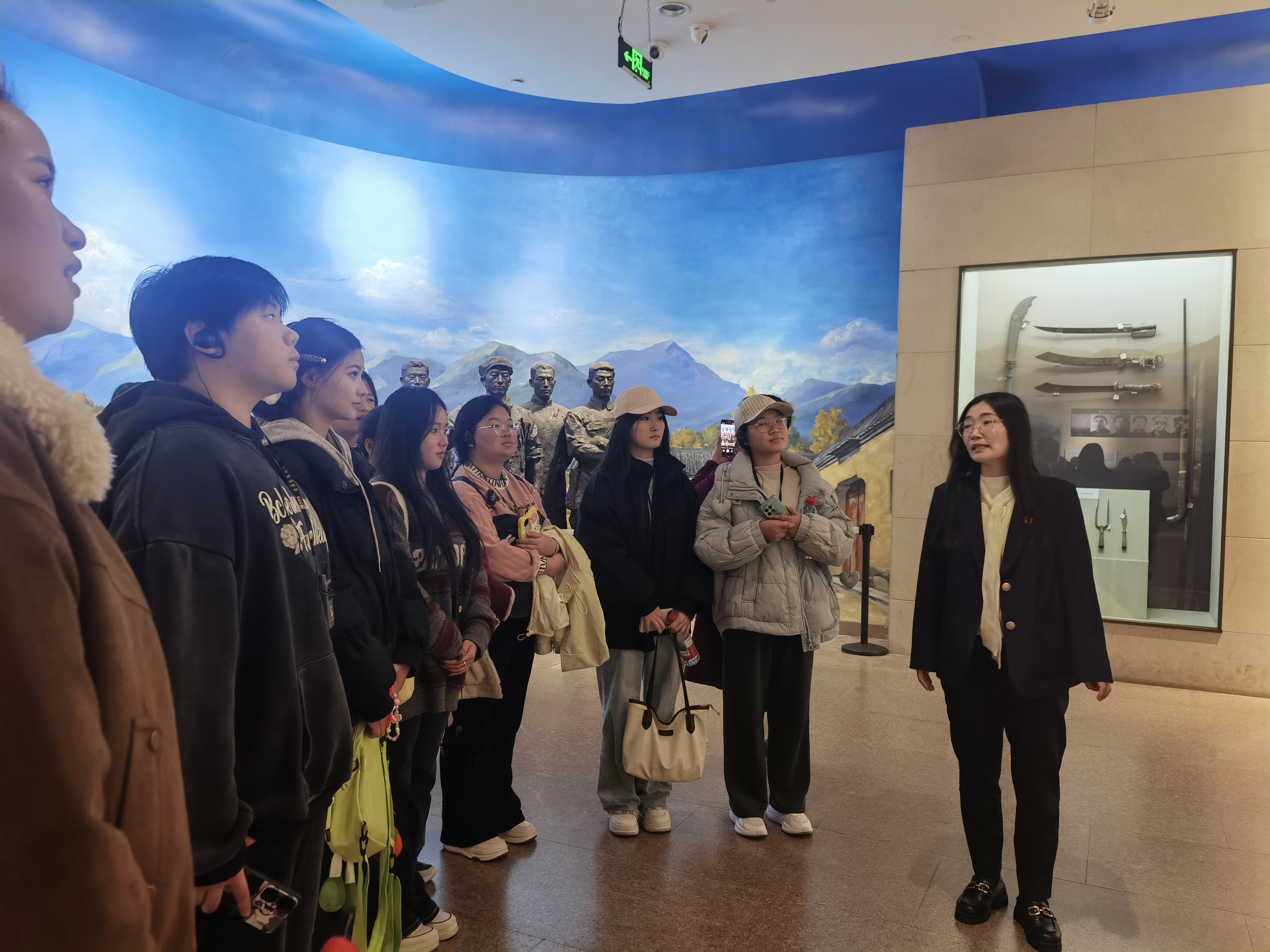 参观结束后,实践教学的核心环节——“场馆里的思政课”在庄重的革命历史纪念馆内正式开讲。《思想道德与法治》教研室教师代表,以厚重的历史为教材,以鲜活的场馆为课堂,为学生们带来了一堂“沉浸式”的思政课。