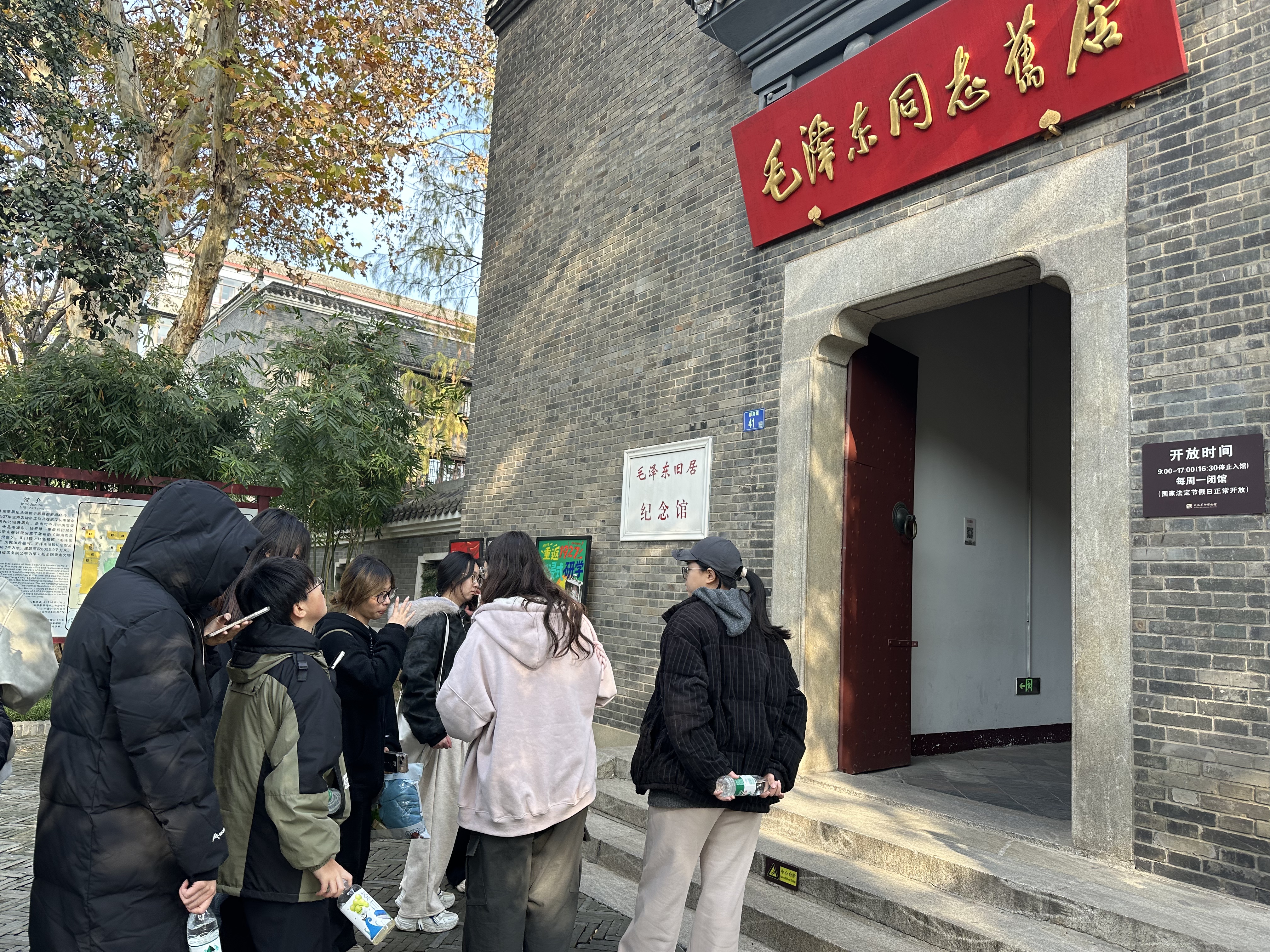 行至都府堤41号毛泽东同志旧居,师生们走进毛泽东同志1927年撰写《湖南农民运动考察报告》的简陋书房。教师重点讲述了青年毛泽东深入农村、徒步调研32天的史实,剖析其“没有调查就没有发言权”的思想精髓。学生们驻足于油灯文稿前,细细体会革命领袖在白色恐怖下坚持真理、探索道路的坚定信念。视传2504班朱晓同学感慨道:“看到桌椅上岁月留下的痕迹,我才真正懂得,伟人的思想不是凭空而来,而是扎根泥土、心系百姓的结晶。”