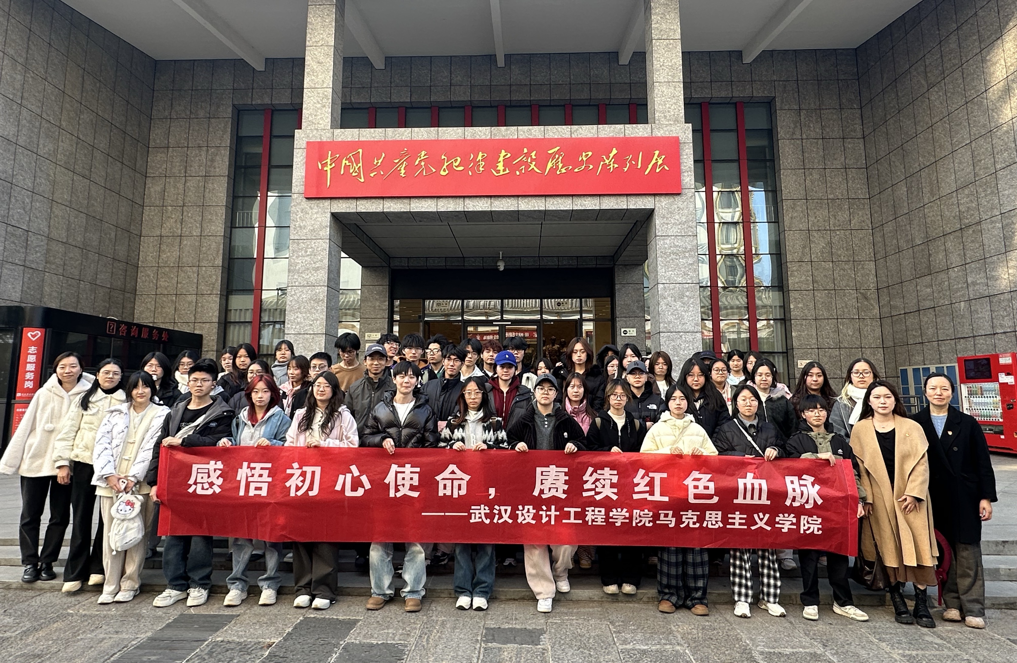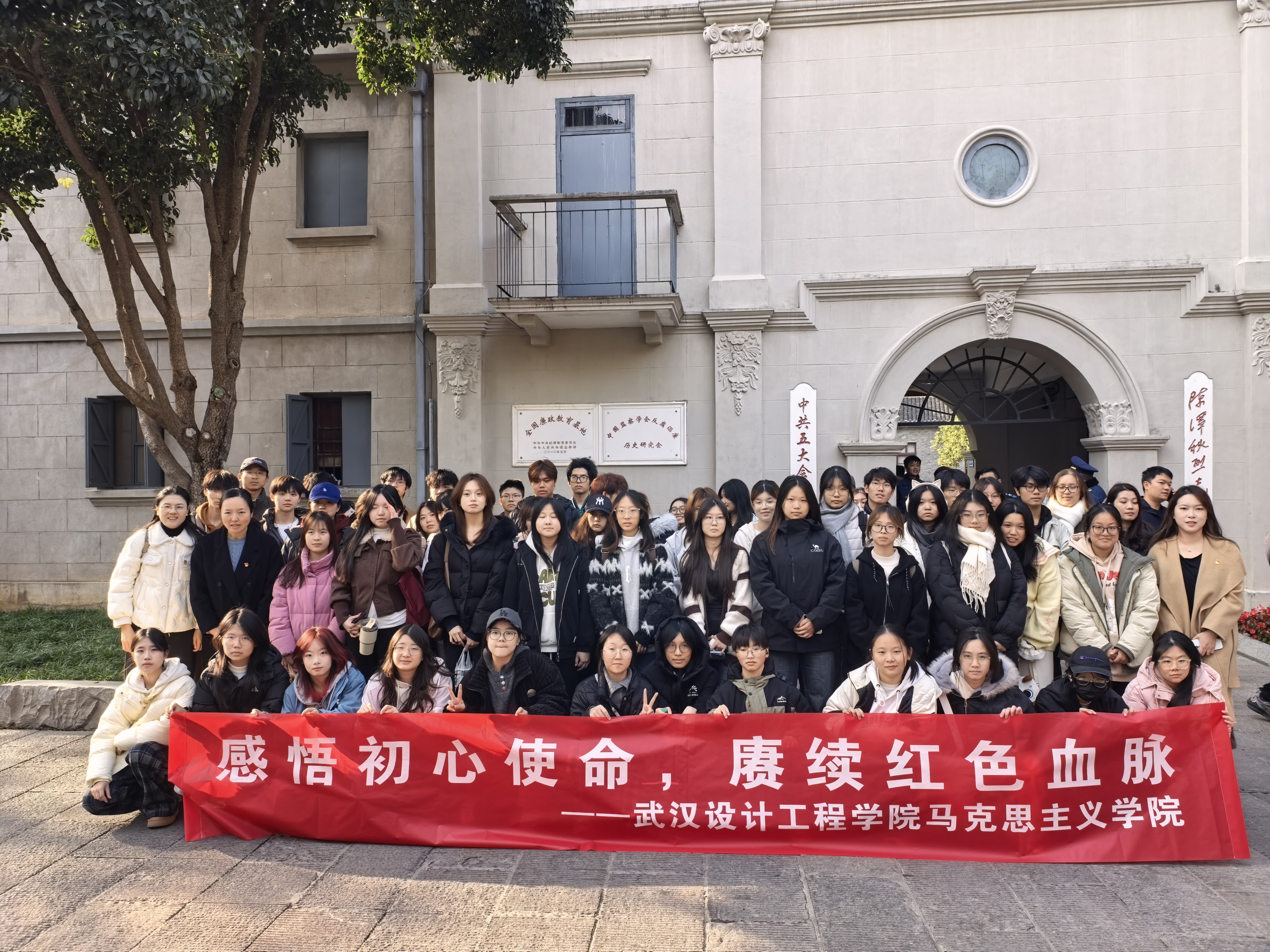 本次实践教学由《中国近现代史纲要》教研室教师卫凤娇、王帅、王婧雯、吕静和公共艺术学院杨阳老师联合指导,依托武汉革命博物馆的武昌中央农民运动讲习所旧址纪念馆、毛泽东旧居纪念馆、中共五大会址纪念馆及中国共产党纪律建设历史陈列馆等红色资源,通过沉浸式现场教学,将教材中关于党的创建、国共合作、农民运动等历史事件转化为可感可知的历史体验。