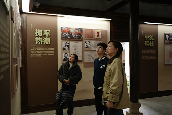 活动第一站,师生走进陂安南县革命史陈列馆。馆内泛黄的书信文稿、斑驳的革命实物、珍贵的历史图片,生动再现了“黄麻烽火”燃遍鄂豫皖的峥嵘岁月,深刻诠释了红安“家家有红军、户户有烈士,人人有故事、村村有丰碑”的革命底蕴。同学们以“镜寻”为视角,用镜头定格家书笔墨、袖章印记、英烈名录等动人细节,在直观感受中触摸历史温度、铭记革命先辈的牺牲与奉献。
