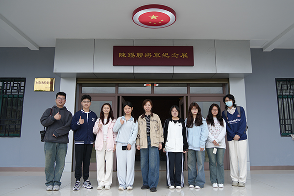 在陈锡联将军纪念展馆,师生们认真聆听讲解,全面了解这位14岁投身革命、19岁担任师政委的开国上将戎马一生、功勋卓著的光辉历程。现场,带队教师在将军铜像前开设“行走的微课堂”,结合陈锡联将军坚定跟党走、毕生献革命的感人事迹,引导青年学生深刻感悟革命先辈坚如磐石的理想信念与“永远听党话、铁心跟党走”的思想自觉,让思政教育从课堂延伸至红色现场。